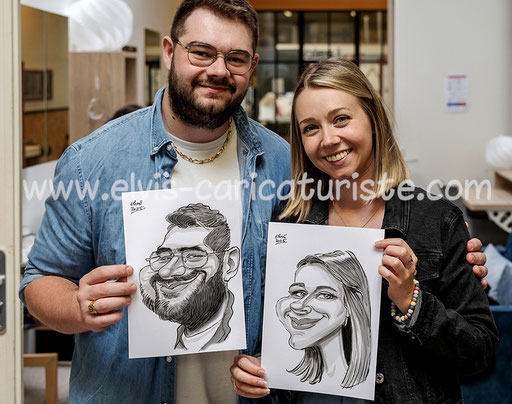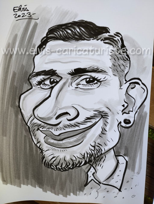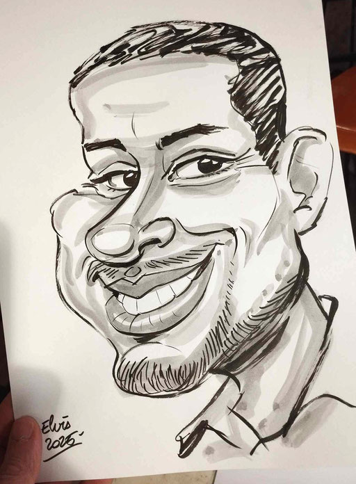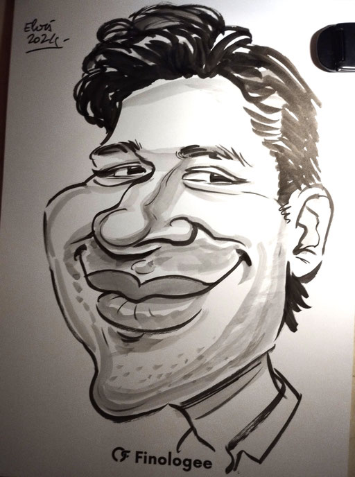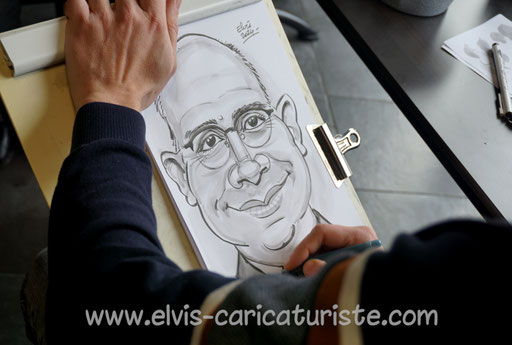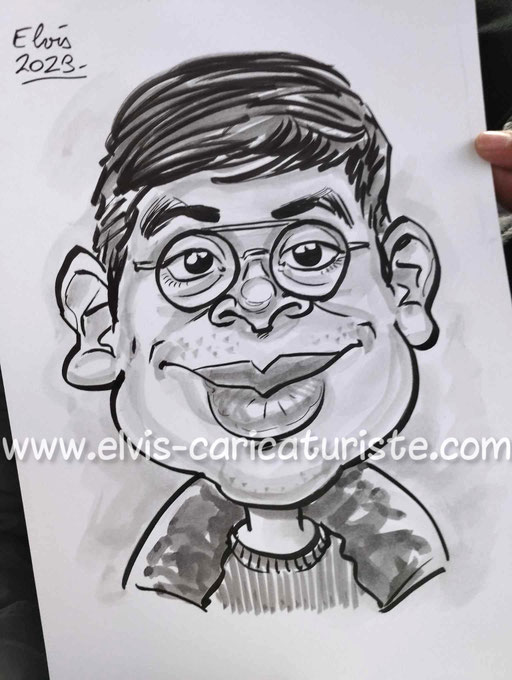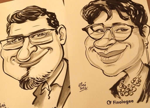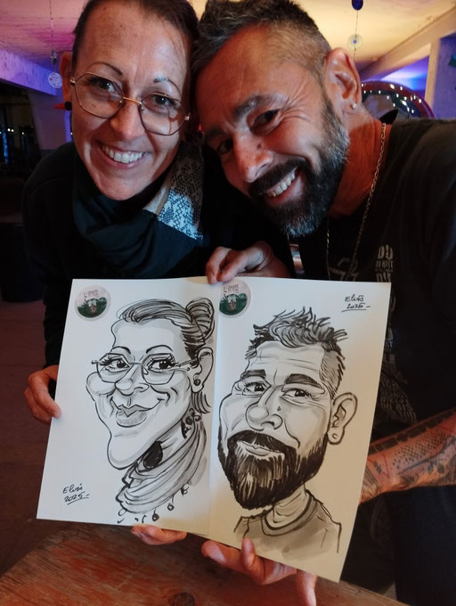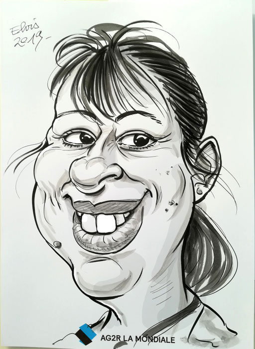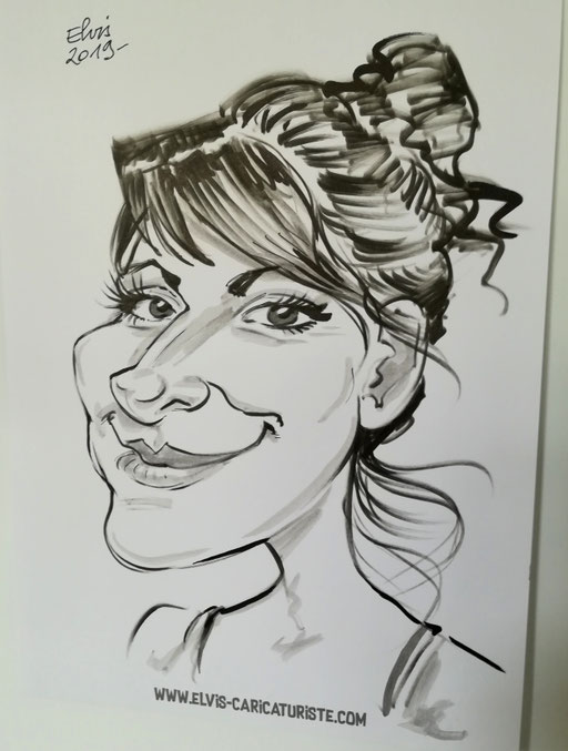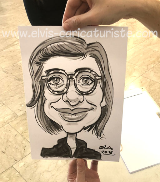 Mes dessins, réalisés au feutre et au pinceau, prennent vie dans un lavis de gris sous les rires complices des personnes présentes !